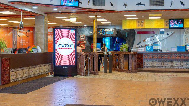 Dinamišką reklamą prie vandens parko kasų ir antrame aukšte, šalia vandens pramogų zonos, transliuoja du OWEXX ekranai. Ekranų pozicija vandens parko erdvėse lemia, kad reklama nelieka nepastebėta, todėl norintiems transliuoti ryškius reklamos klipus vandens parke tai yra optimalus pasirinkimas.